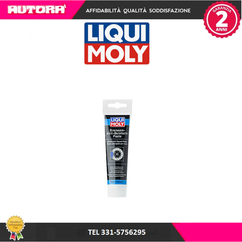 Lubrificante sintetico speciale per il sistema frenante. Estremamente aderente, resistente al sale antigelo e agli spruzzi d'acqua. Previene ed elimina il cigolio che insorge tra i pistoni delle pinze dei freni/le superfici di appoggio e le pastiglie. Garantisce il buon funzionamento dell’intero impianto frenante e impedisce il grippaggio dei cerchioni sui mozzi ruota o una loro saldatura dovuta ad ossidazione. Range di temperatura di utilizzo: da -40 °C a +1.200 °C.